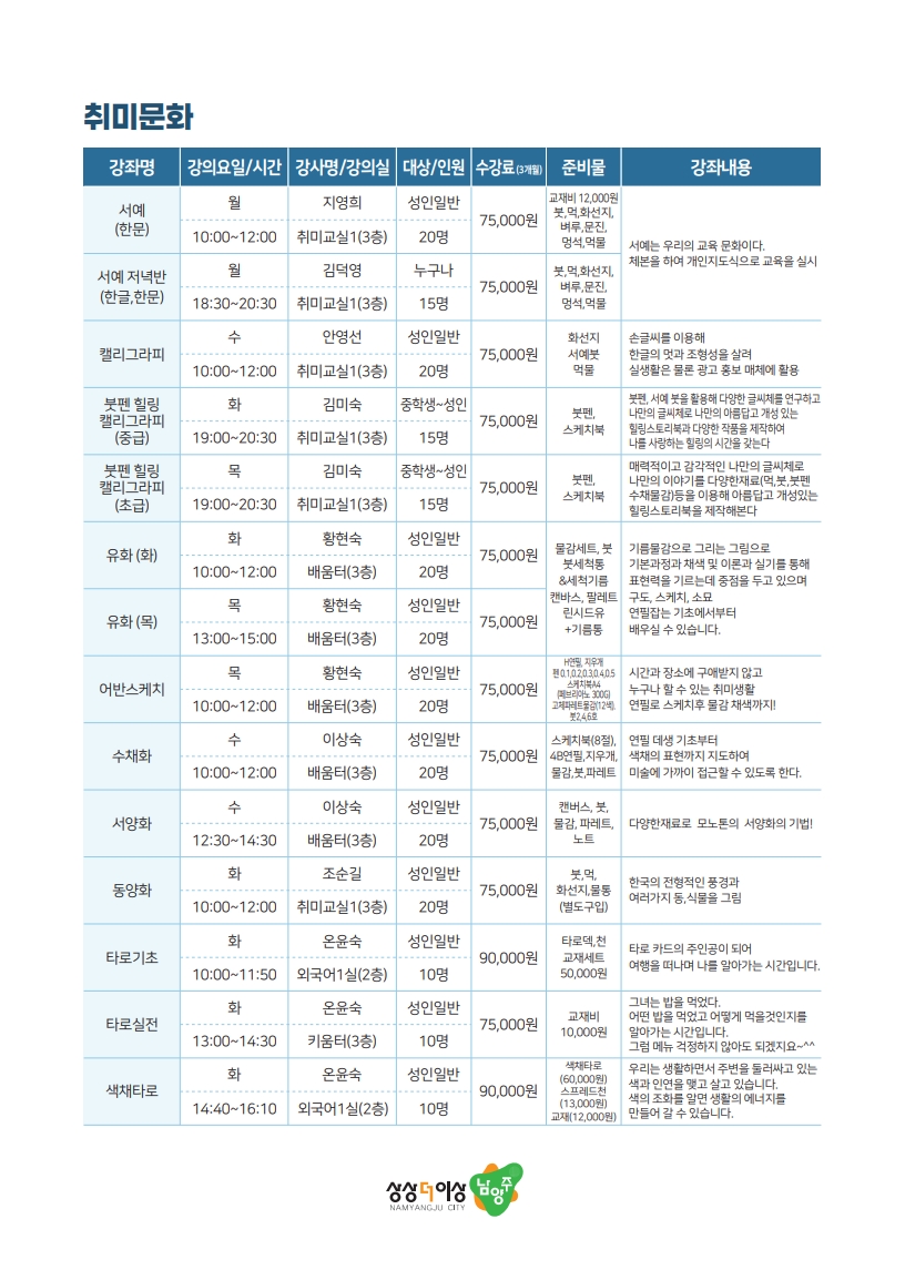 [프로그램안내] 2026년 1분기(1월~3월) 화도읍주민자치센터 프로그램 수강생모집 |