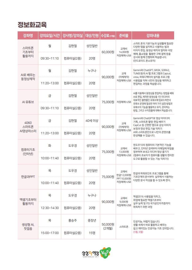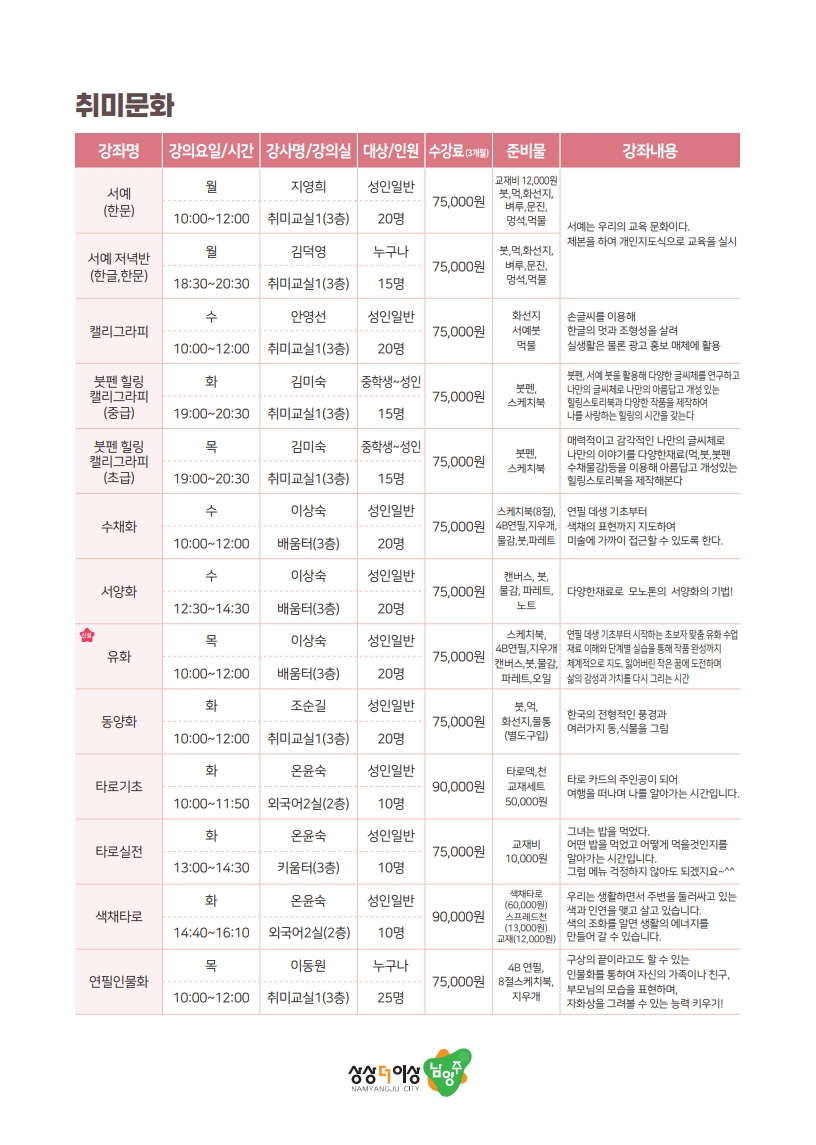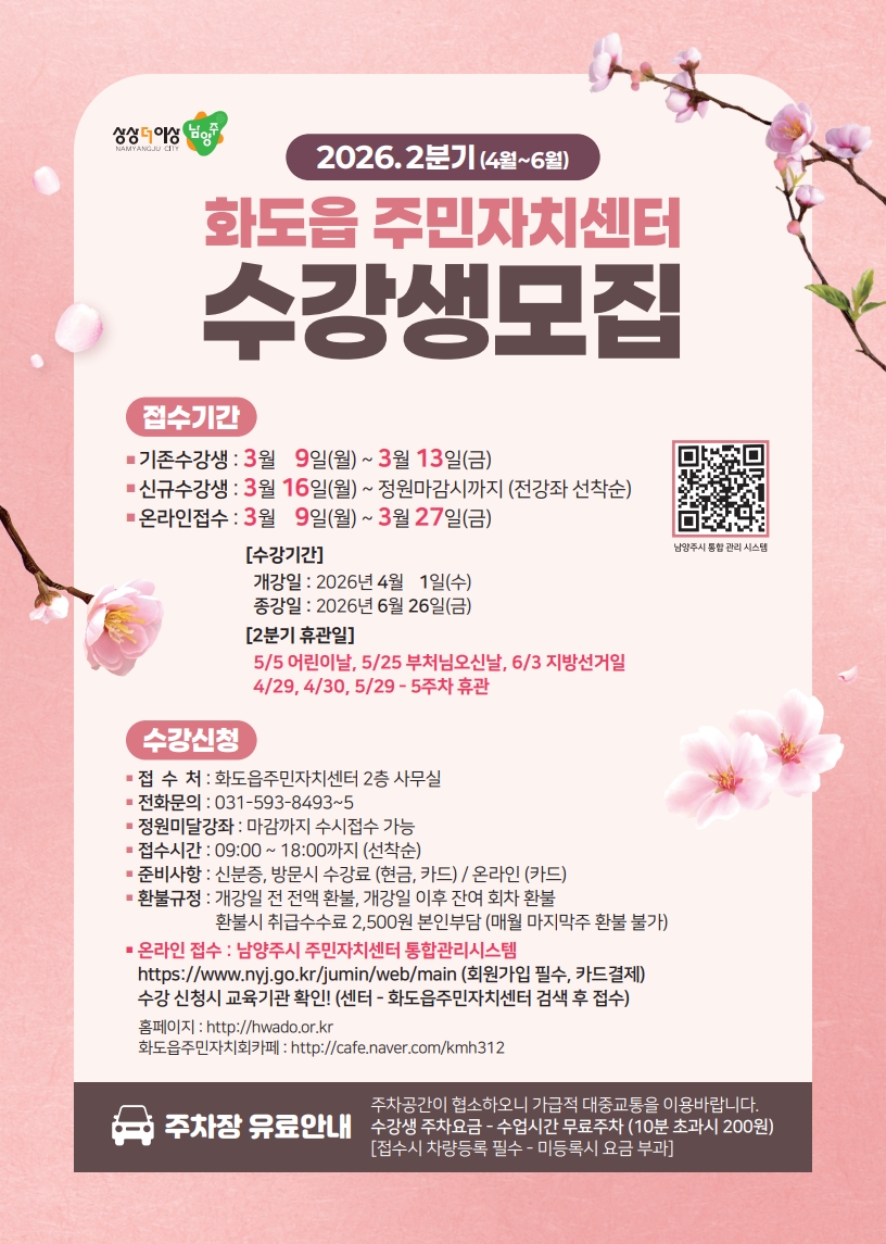 [프로그램안내] 2026년 2분기(4월~6월) 화도읍주민자치센터 프로그램 수강생모집 |