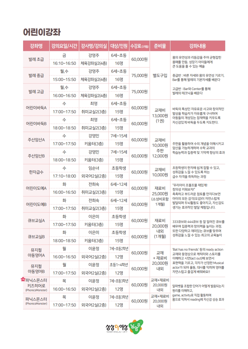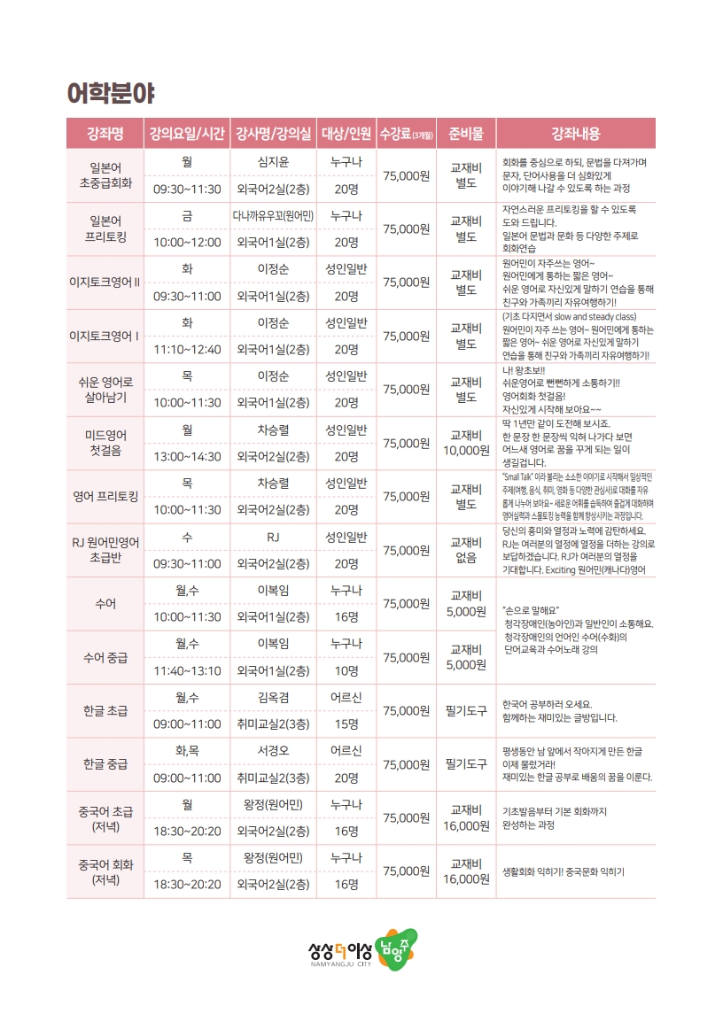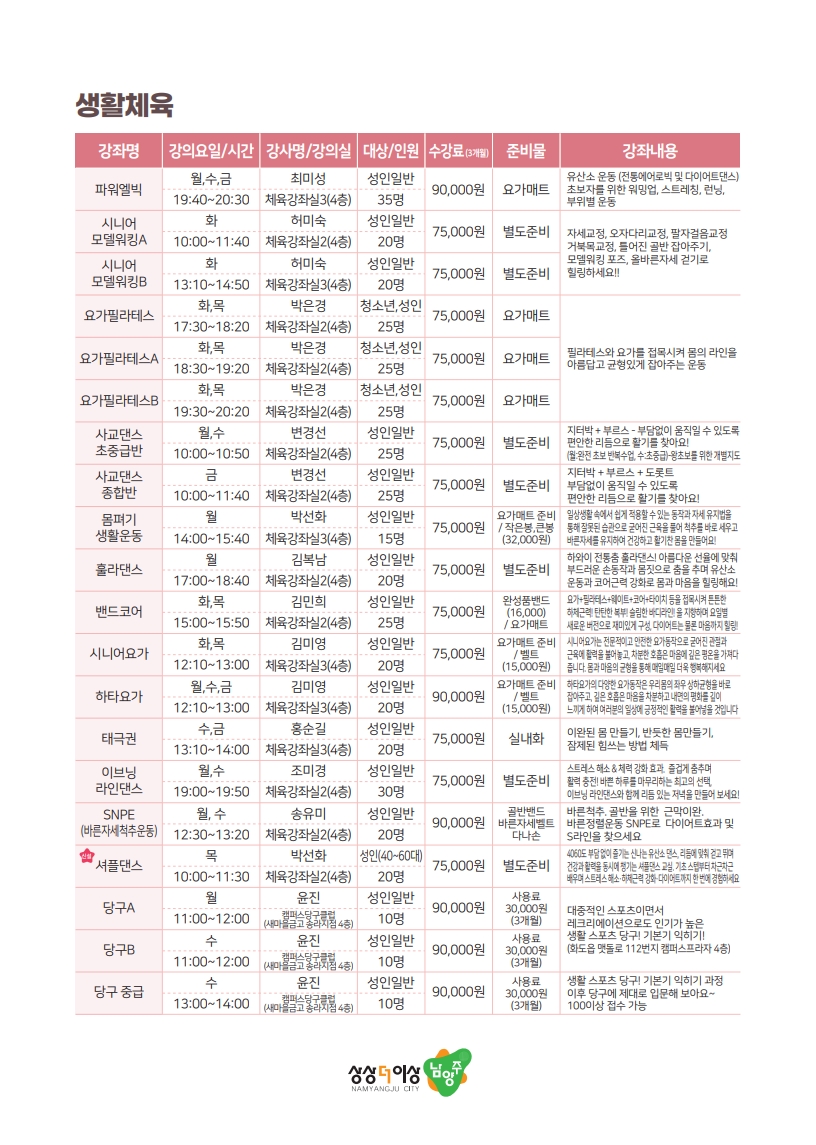 신규수강생 : 3월 16일(월) ~ 정원마감시까지 (전강좌 선착순)