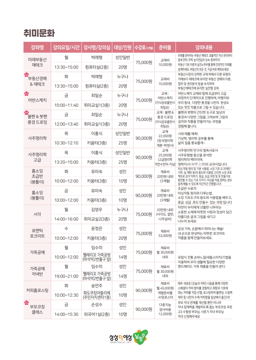 2026년 2분기(4월~6월) 화도읍주민자치센터 프로그램 수강생모집 0 |