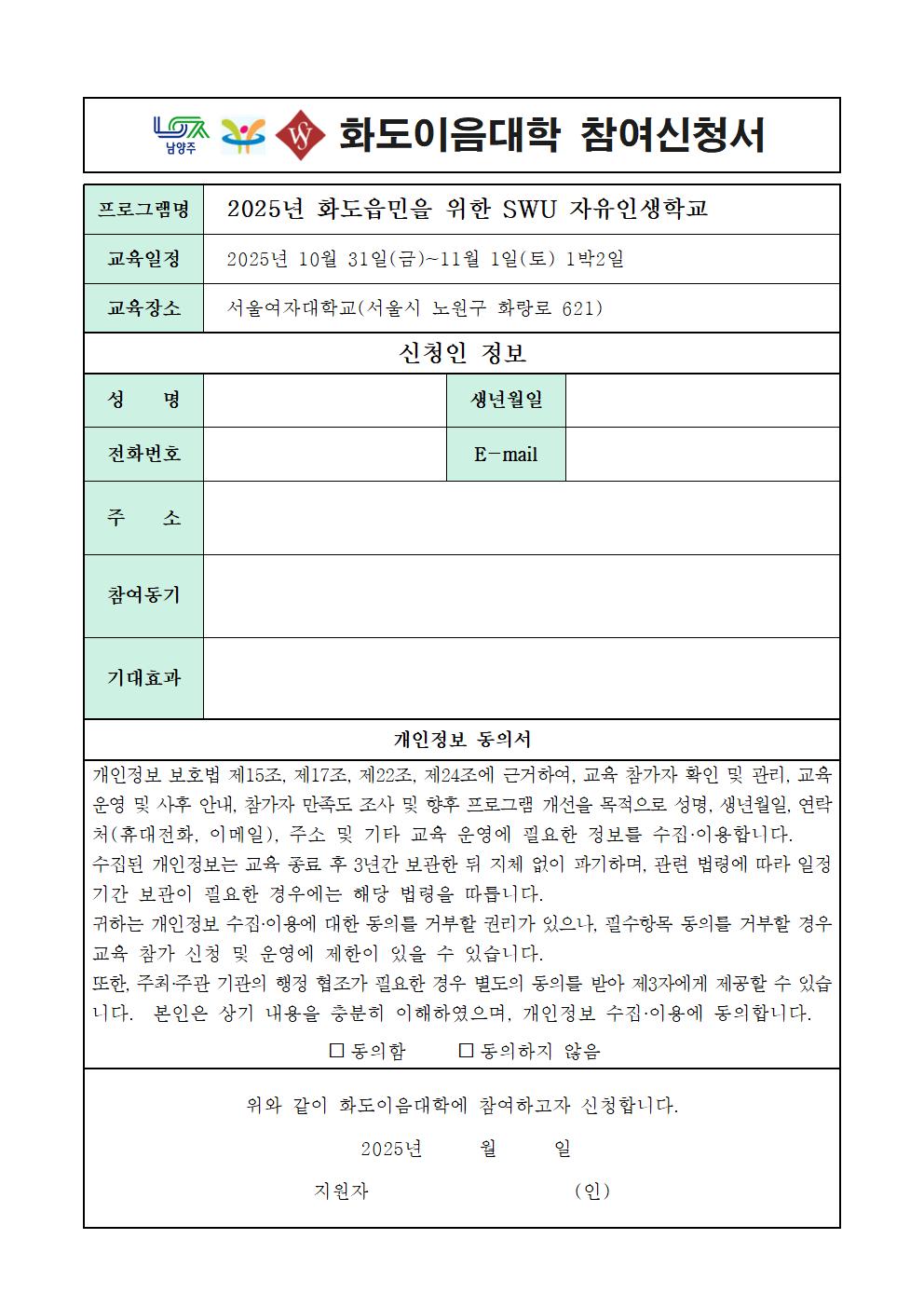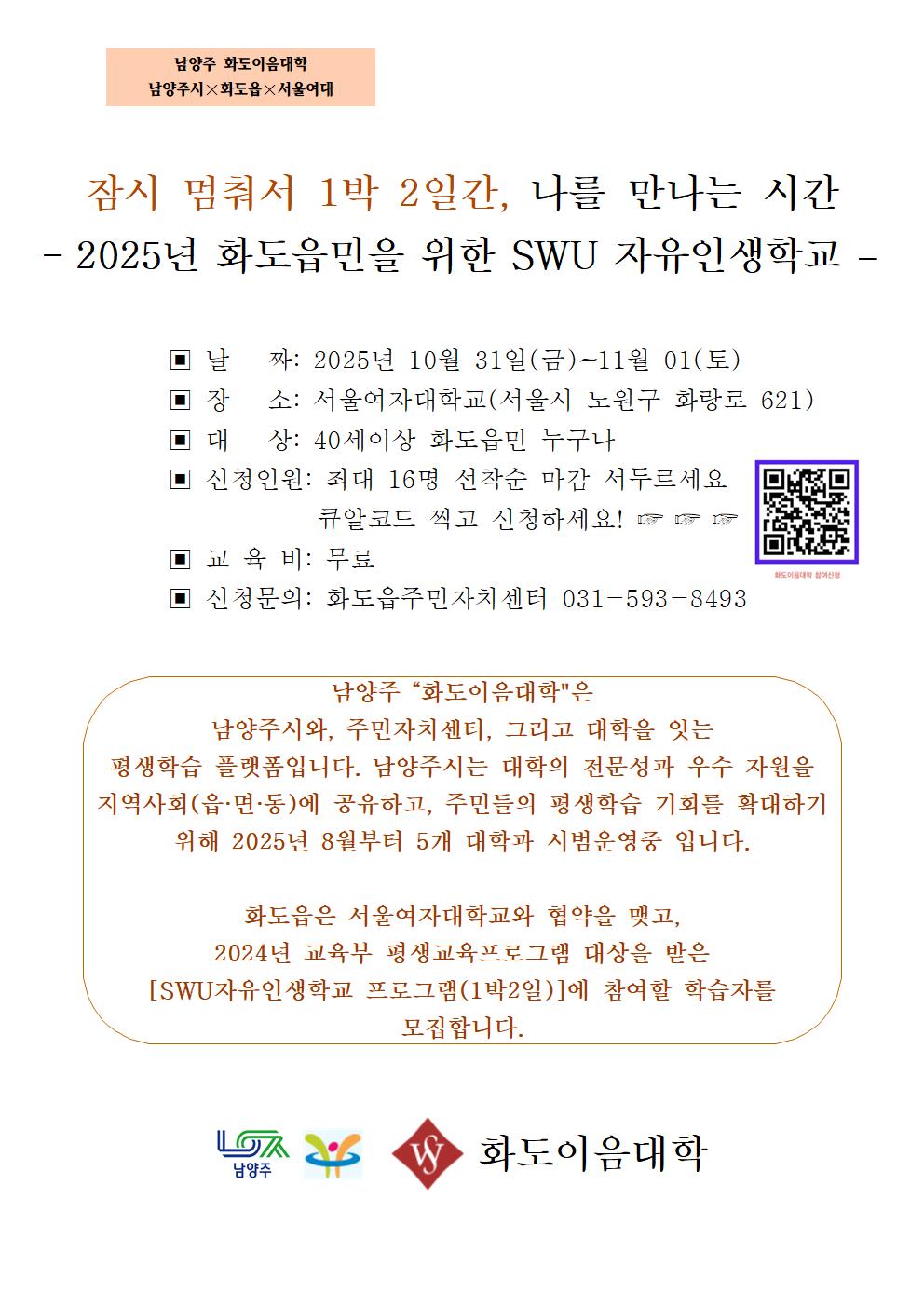 2025년 화도이음대학 참가자 모집 (참가비 무료 -남양주시 전액지원) 선착순 접수